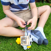 The Busy Block Fidget Tool is designed to entertain and engage while developing everyday functional movements. Each side of the cube features a unique interactive tool — from taps and latches to switches and gears — offering children a variety of tactile experiences in one compact gadget.