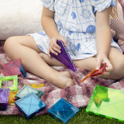 Because the tiles attract on every edge, children can experiment with symmetry, balance and geometry β encouraging problem solving, planning and creative exploration. The magnetic nature of the tiles also introduces cause-and-effect play and enhances sensory feedback through tactile and visual engagement.