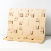 A magnetic timber visual planner that helps children see and understand weekly plans and daily routines through easy-to-use picture tiles — supporting predictability, routine and engagement.