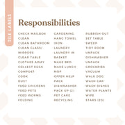 Second Scout Tile Labels are the most effective way to customise your much-loved Little Agenda and Routine Helper. The Responsibilities Pack includes 60 adhesive labels for a no-nag way to get everyone involved in chores and responsibilities around the house.